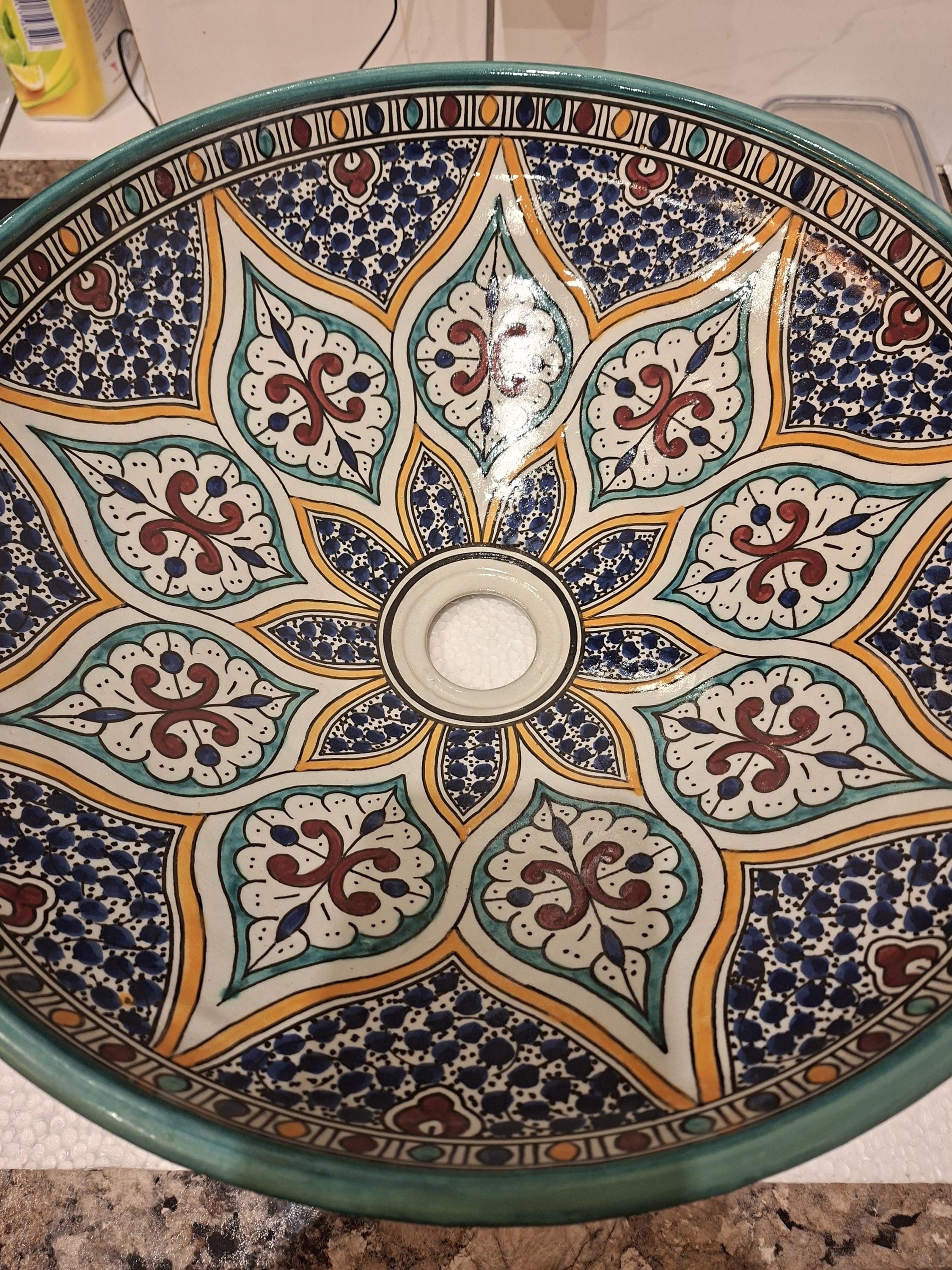 Colorful Moroccan Sink | An Intricate, Riad-Inspired Artisan Basin for Vanity Top