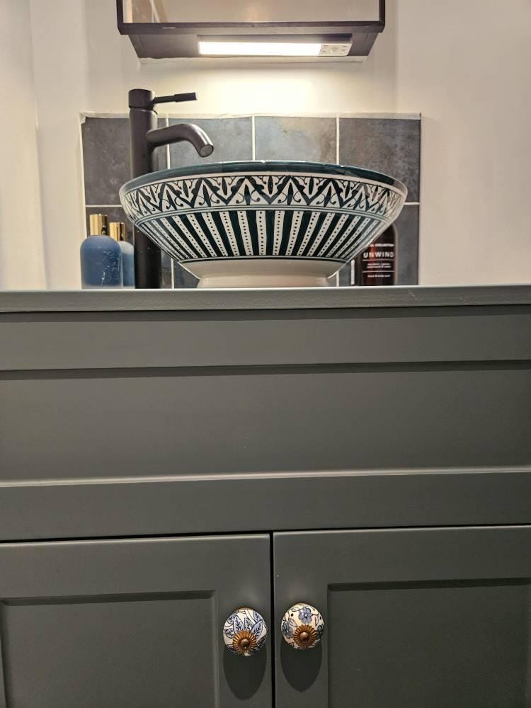Artisan Vessel Sink | A Statement of Moroccan Elegance, Hand-Painted in Deep Teal